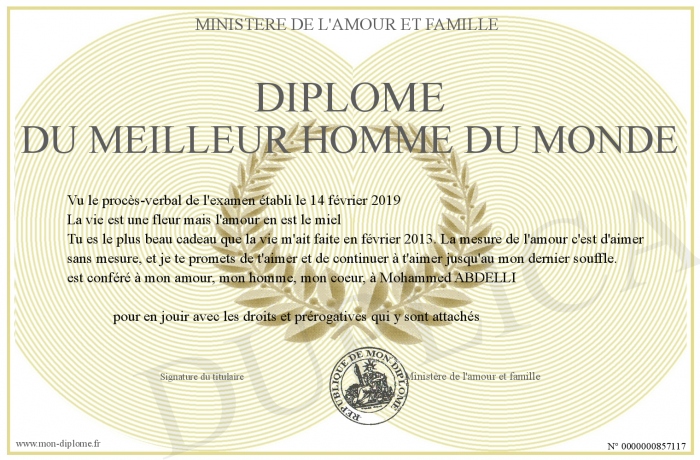 Envoyez par email votre Diplôme du Meilleur homme du Monde personalisé