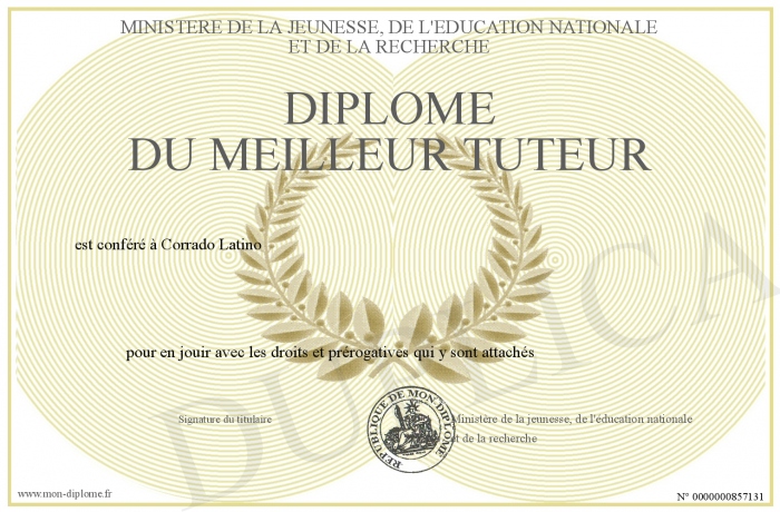 Envoyez par email votre Diplôme du meilleur tuteur personalisé