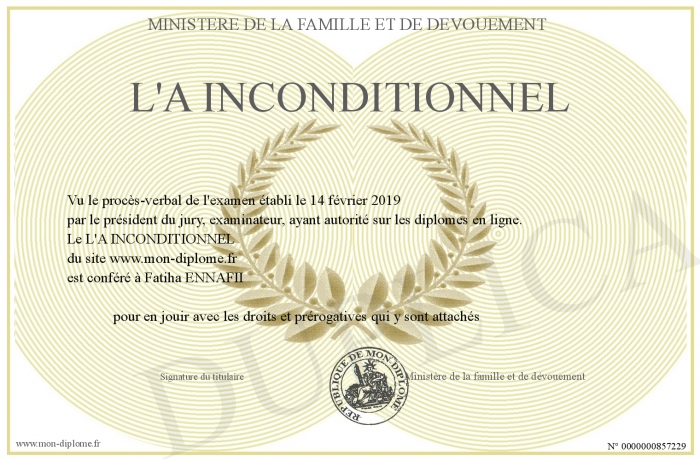 Envoyez par email votre L'A INCONDITIONNEL personalisé