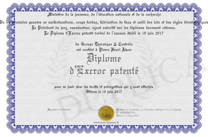 Envoyez par email votre Diplôme d'Excroc patenté personalisé