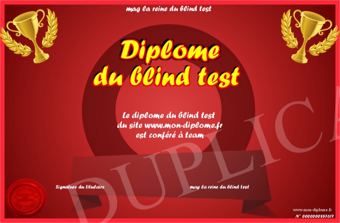 Envoyez par email votre Diplome du blind test personalisé