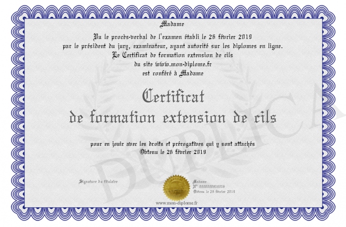 Envoyez par email votre Certificat de formation extension de cils personalisé