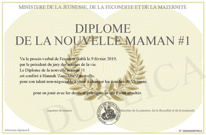 Envoyez par email votre Diplôme de la nouvelle maman #1 personalisé