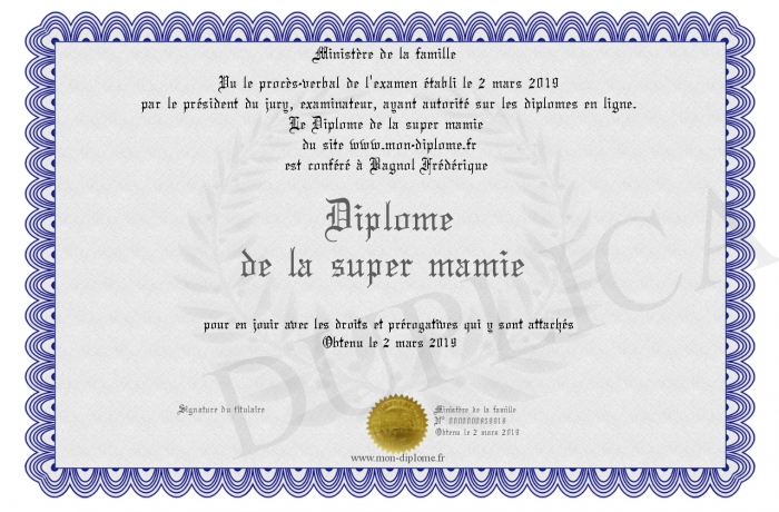 Envoyez par email votre Diplôme de la super mamie personalisé