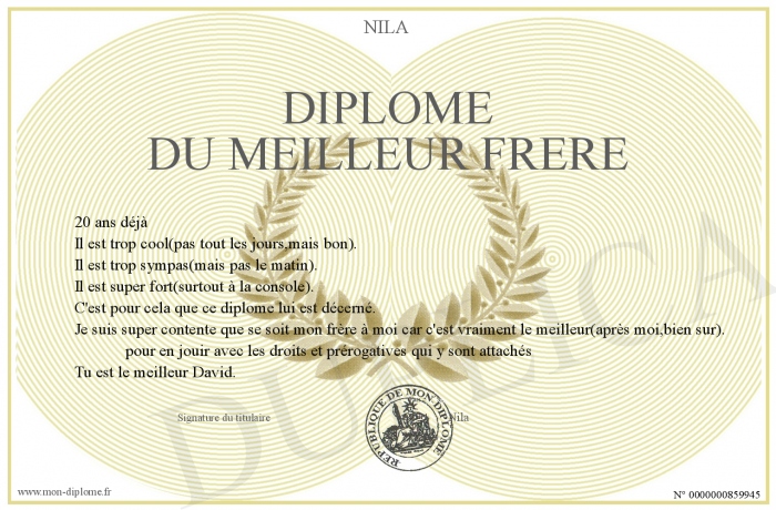 Envoyez par email votre Diplôme du meilleur frère personalisé