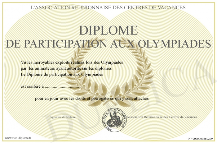 Envoyez par email votre Diplôme de participation aux Olympiades personalisé