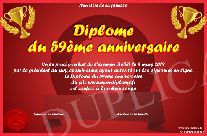 Envoyez par email votre Diplôme du 59ème anniversaire personalisé
