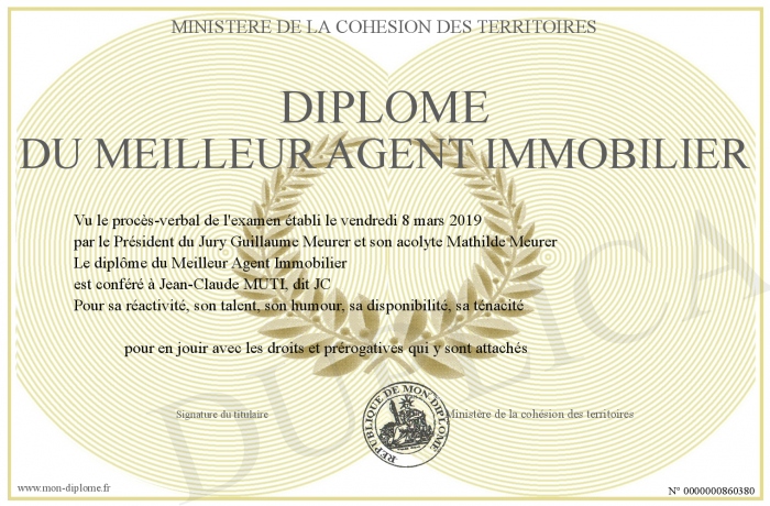 Envoyez par email votre Diplôme du meilleur agent immobilier personalisé