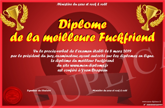 Envoyez par email votre Diplome de la meilleure Fuckfriend personalisé