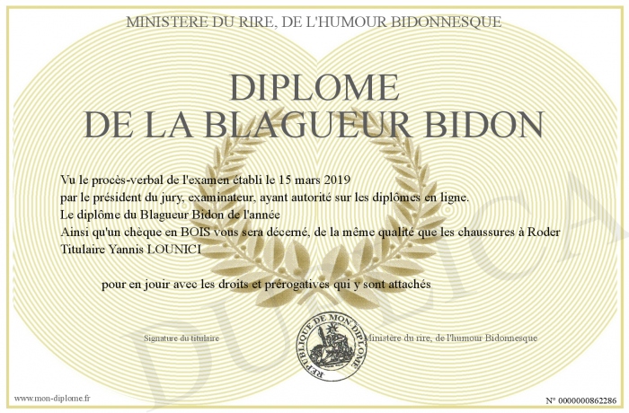 Envoyez par email votre Diplome de la Blagueur bidon personalisé