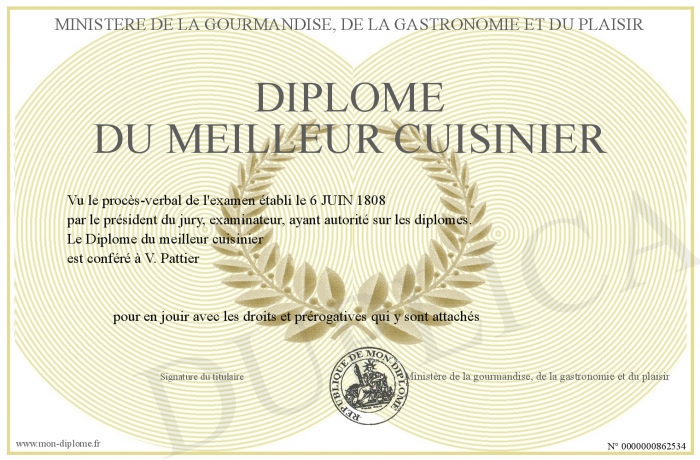 Envoyez par email votre Diplôme du meilleur cuisinier personalisé