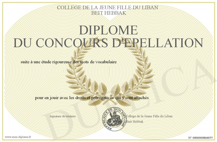 Envoyez par email votre Diplôme du concours d'épellation personalisé