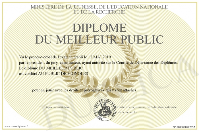 Envoyez par email votre Diplôme du meilleur public personalisé
