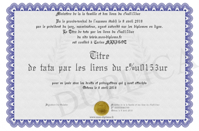 envoyé par le Ministère de la la famille et des liens du coeur !