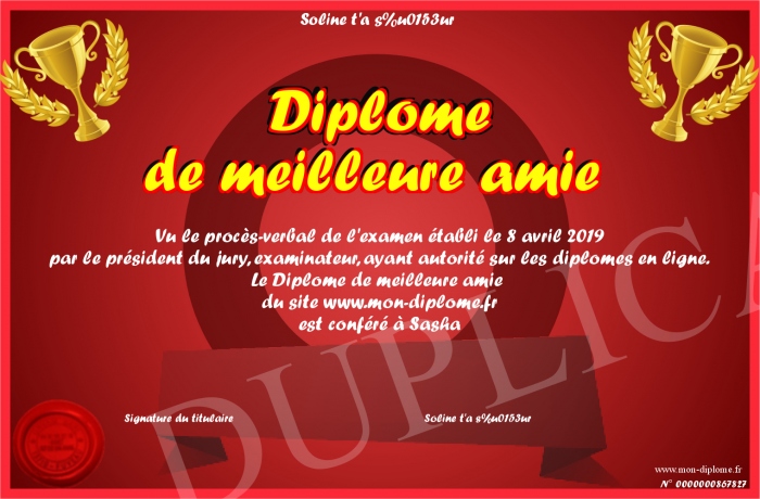 Envoyez par email votre Diplôme de meilleure amie personalisé