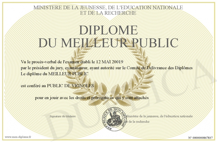 Envoyez par email votre Diplôme du meilleur public personalisé