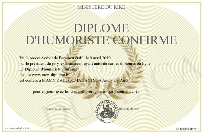 Envoyez par email votre Diplôme d'humoriste confirmé personalisé
