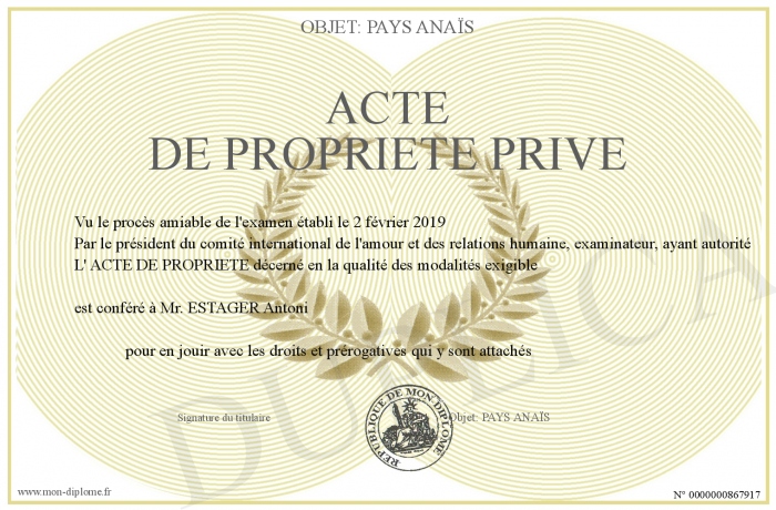 Envoyez par email votre ACTE DE PROPRIETE PRIVE personalisé