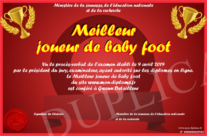 Envoyez par email votre Meilleur joueur de baby foot personalisé