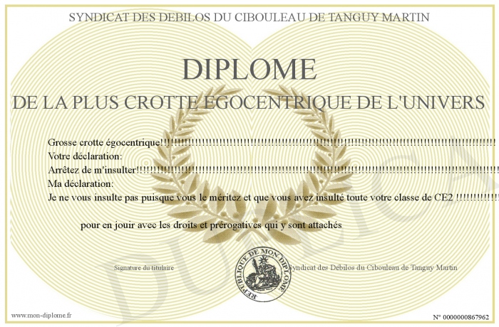 Envoyez par email votre Diplôme de la plus crotte égocentrique de l'Univers personalisé