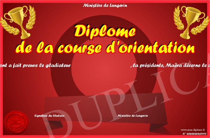 Envoyez par email votre Diplôme de la course d'orientation personalisé