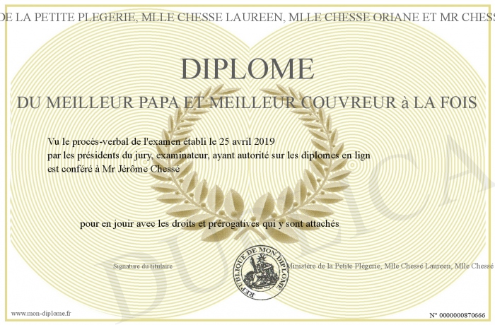 Envoyez par email votre Diplôme du meilleur papa et meilleur couvreur à la fois personalisé