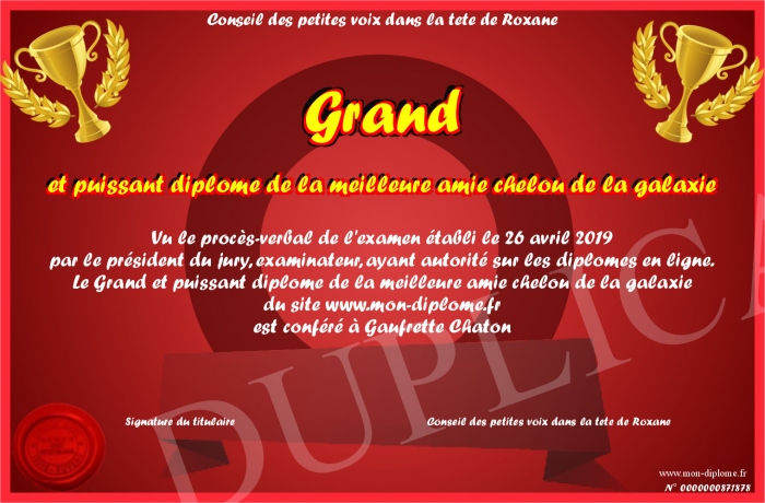 Envoyez par email votre Grand et puissant diplôme de la meilleure amie chelou de la galaxie personalisé