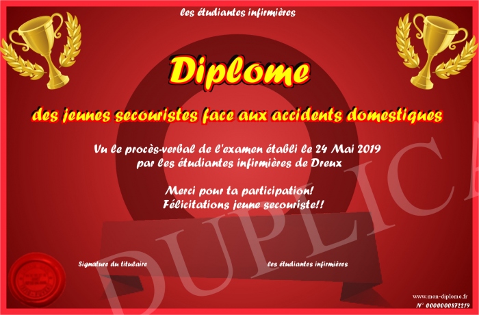 Envoyez par email votre Diplome des jeunes secouristes face aux accidents domestiques personalisé