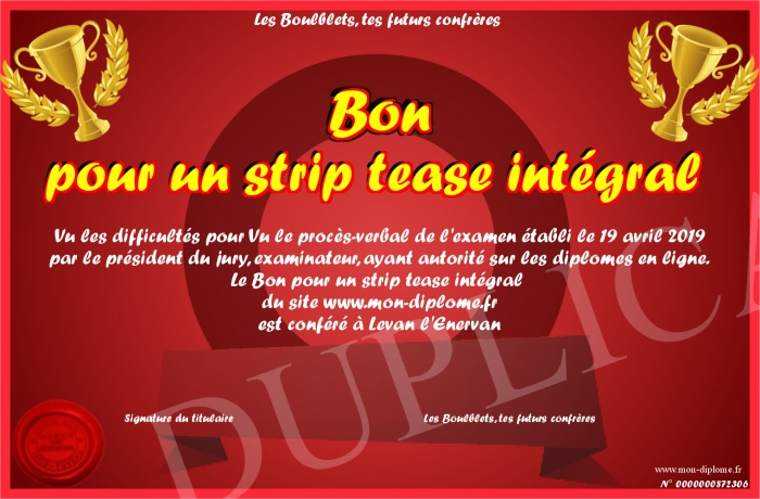 Envoyez par email votre Bon pour un strip tease intégral personalisé