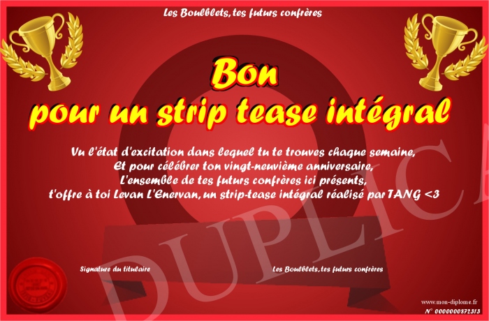 Envoyez par email votre Bon pour un strip tease intégral personalisé