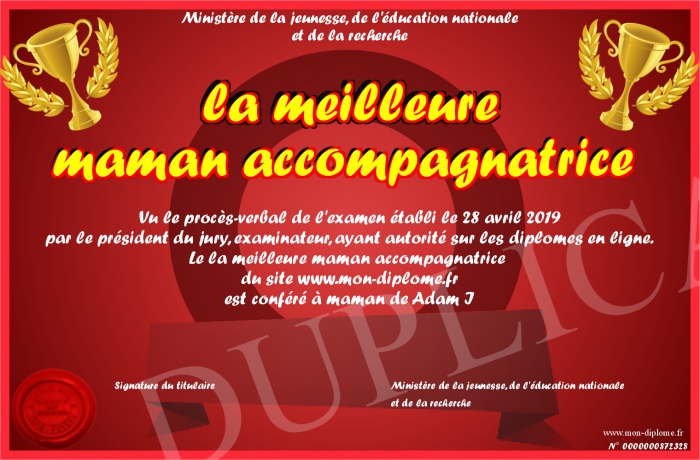 Envoyez par email votre la meilleure maman accompagnatrice personalisé