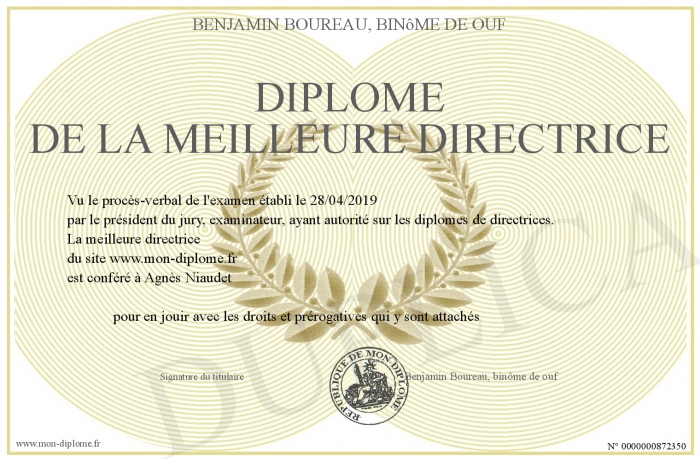 Envoyez par email votre Diplôme de la meilleure directrice personalisé