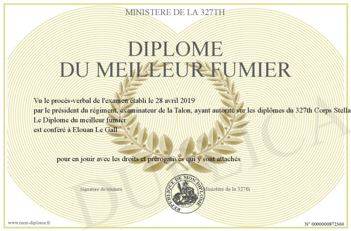 Envoyez par email votre Diplôme du meilleur fumier personalisé