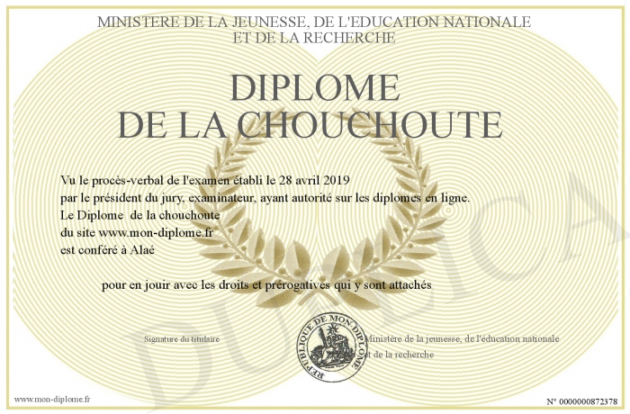 Envoyez par email votre Diplôme de la chouchoute personalisé