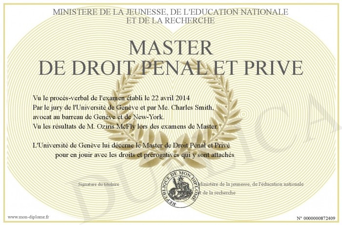 Envoyez par email votre Master de droit pénal et privé personalisé
