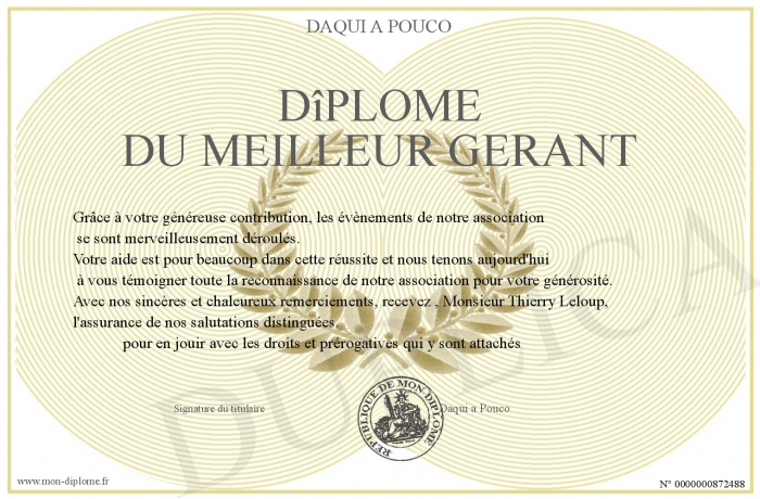 Envoyez par email votre Dîplome du meilleur gérant personalisé