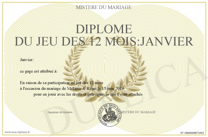 Envoyez par email votre DIPLOME DU JEU DES 12 MOIS:JANVIER personalisé