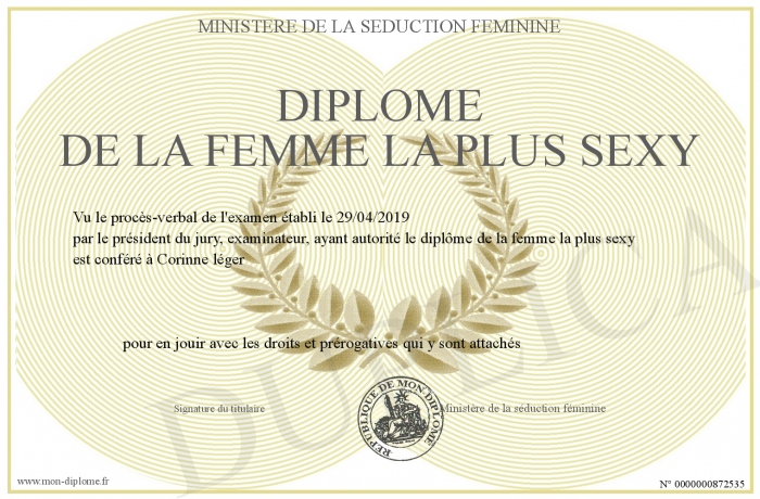 Envoyez par email votre Diplôme de la femme la plus sexy personalisé