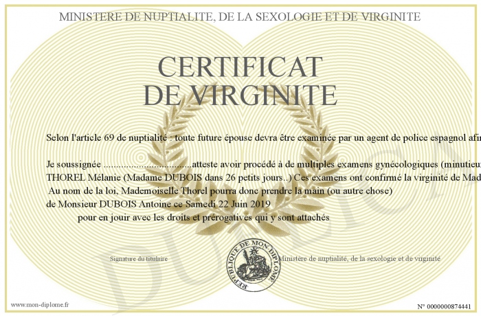 envoyé par le Ministère de nuptialité, de la sexologie et de virginité !