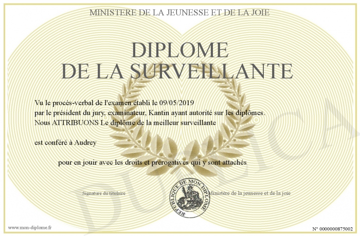 Envoyez par email votre Diplôme de la surveillante personalisé
