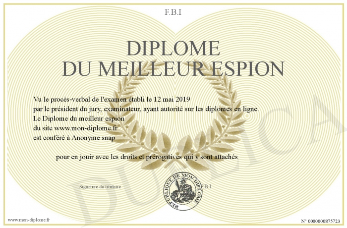 Envoyez par email votre Diplôme du meilleur espion personalisé