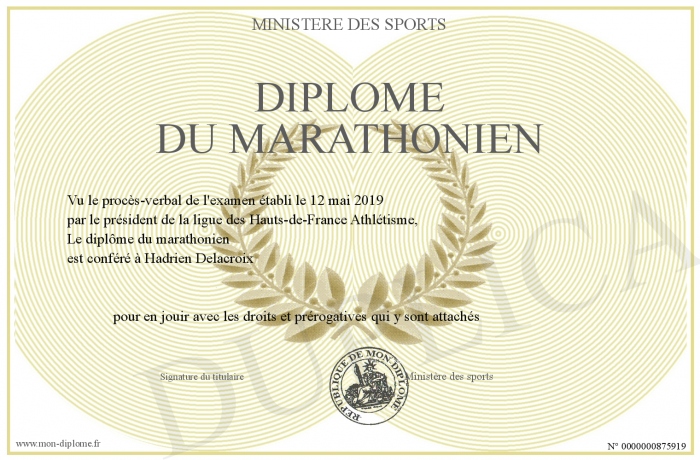 Envoyez par email votre diplôme du marathonien personalisé