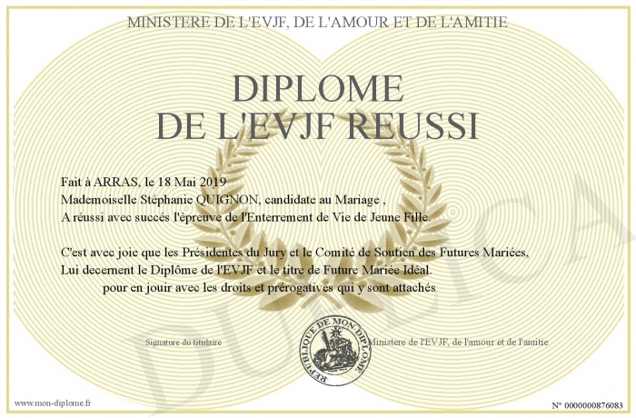 Envoyez par email votre Diplôme de l'EVJF réussi personalisé