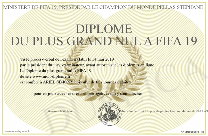 Envoyez par email votre Diplôme du plus grand nul A FIFA 19 personalisé
