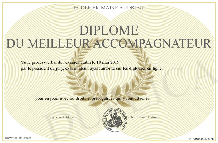 Envoyez par email votre Diplôme du meilleur accompagnateur personalisé