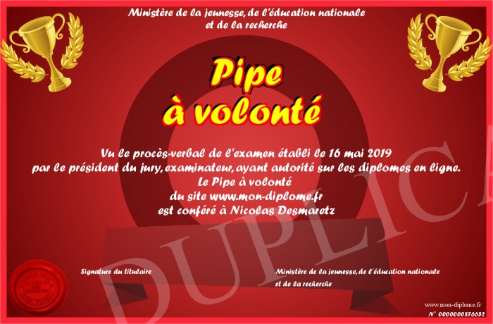 Envoyez par email votre Pipe à volonté personalisé