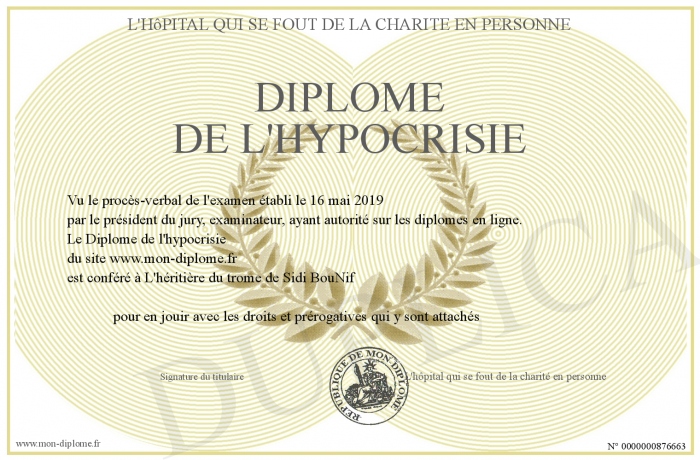 Envoyez par email votre Diplôme de l'hypocrisie personalisé