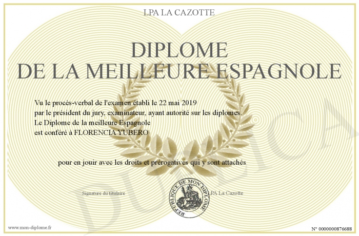 Envoyez par email votre Diplôme de la meilleure Espagnole personalisé