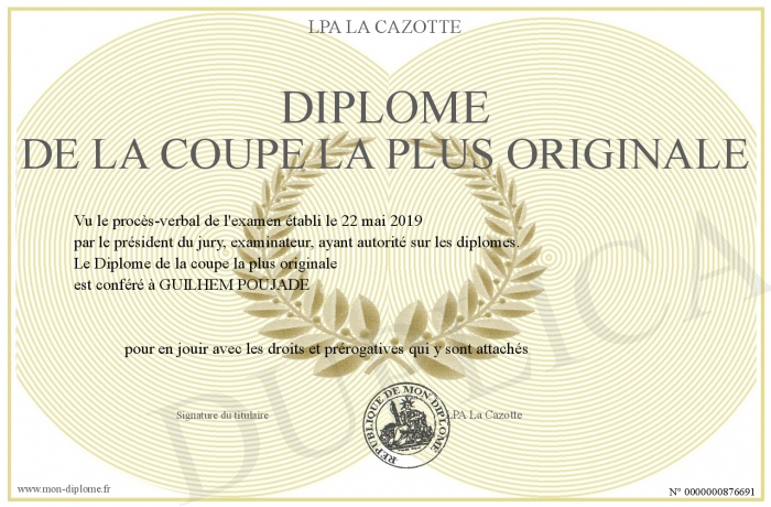 Envoyez par email votre Diplôme de la coupe la plus originale personalisé