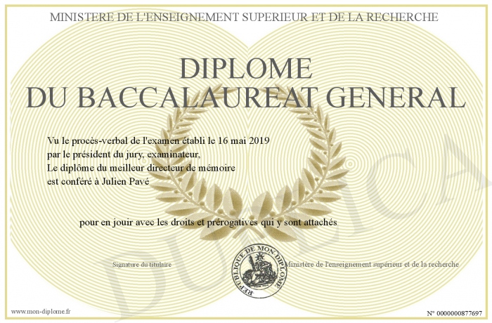 Envoyez par email votre Diplôme du baccalaureat général personalisé